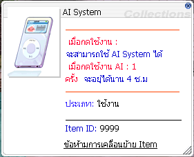 กดใช้งาน 1 ครั้ง ระบบ ai จะบอท 8 ชม แล้วหยุดการทำงาน ต้องกด ใช้งานไอเทมใหม่ เพื่อเปิดใช้งาน AI บอท อีกครั้ง