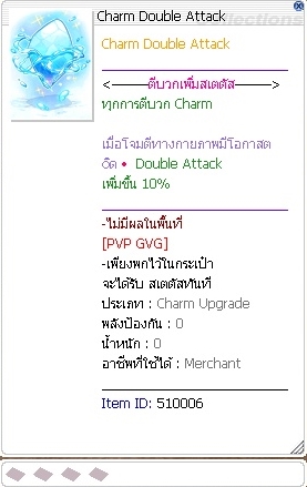Charm ทั่วไป มีผลทุกอาชีพ ไม่มีผลใน [PVP GVG]
