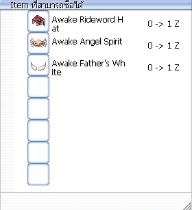 ไอเทมในตู้ HW ทั้งตู้ zeny และ ตู้ Cash สามารถนำไป Craft Awake ได้ดังนี้