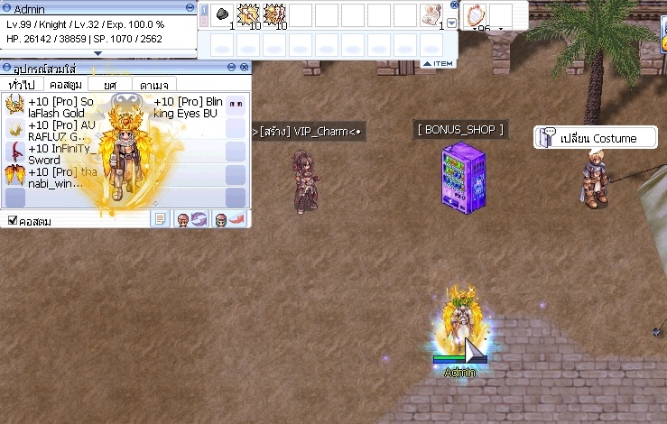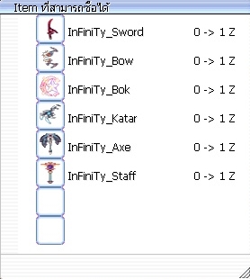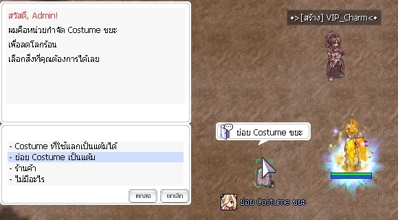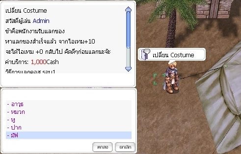 [5] เพิ่ม NPC แลกเปลี่ยน Costume เข้าสู้เซิฟเวอร์ ค่าบริการ 1000 Cash ต่อ 1 ชิ้น เมื่อทำการแลก คอสจะได้ +0 กลับมา