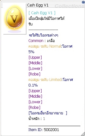 Cash Egg V1 มีโอกาสได้ Costume Normal 5 % และ Costume Limited 0.1%